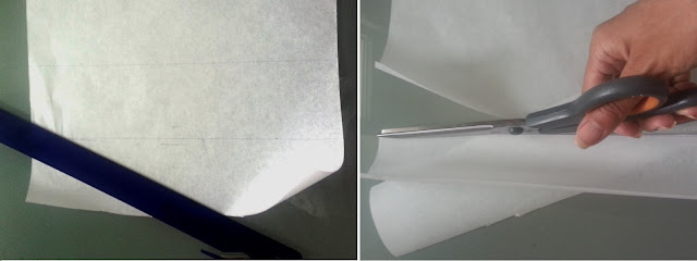 Then for the sides, measure the height of your pan and mark it on the paper to make strips and then cut the strips.