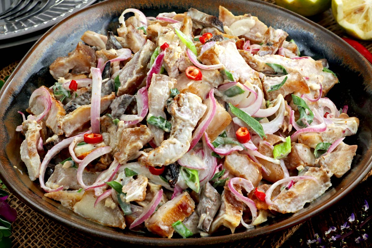 Dinakdakan is an Ilocano dish that is traditionally made from different pork head parts, like the cheeks, nape, ears, and offals to make sure that nothing that can still be eaten is thrown away. These are boiled and then cut to pieces before being grilled until crunchy and slightly charred. Mixed with veggies like chilies, ginger, and onion are tossed in with calamansi juice or vinegar. Lastly, mashed pig's brain is mixed to make it creamy and more flavorful. It is not for the faint of heart, but it is certifiably one of the best regional dishes that the north has to offer.