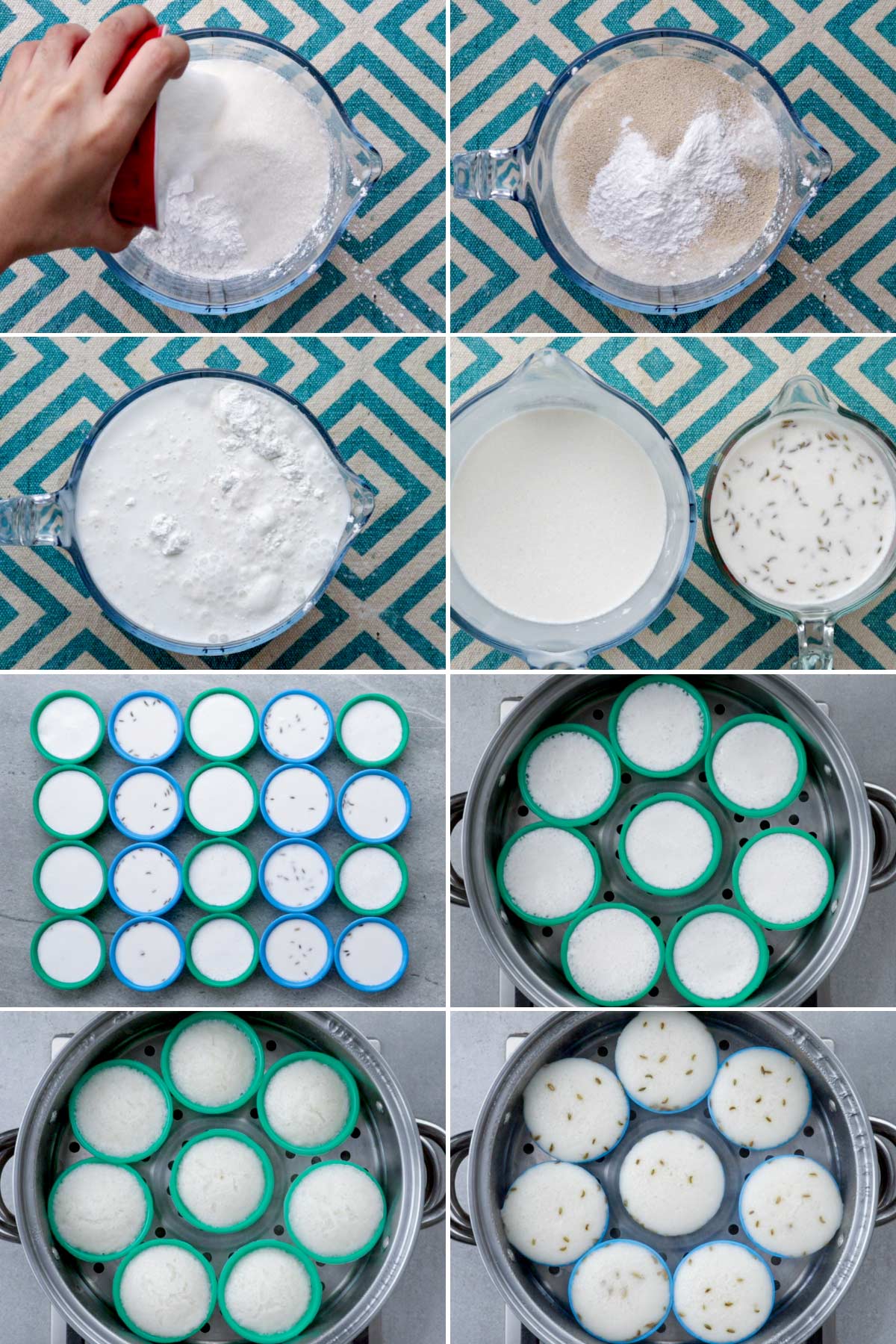 - To avoid condensation water from dripping onto the steamed rice cakes, cover the steamer lid with a clean kitchen towel or cheesecloth.