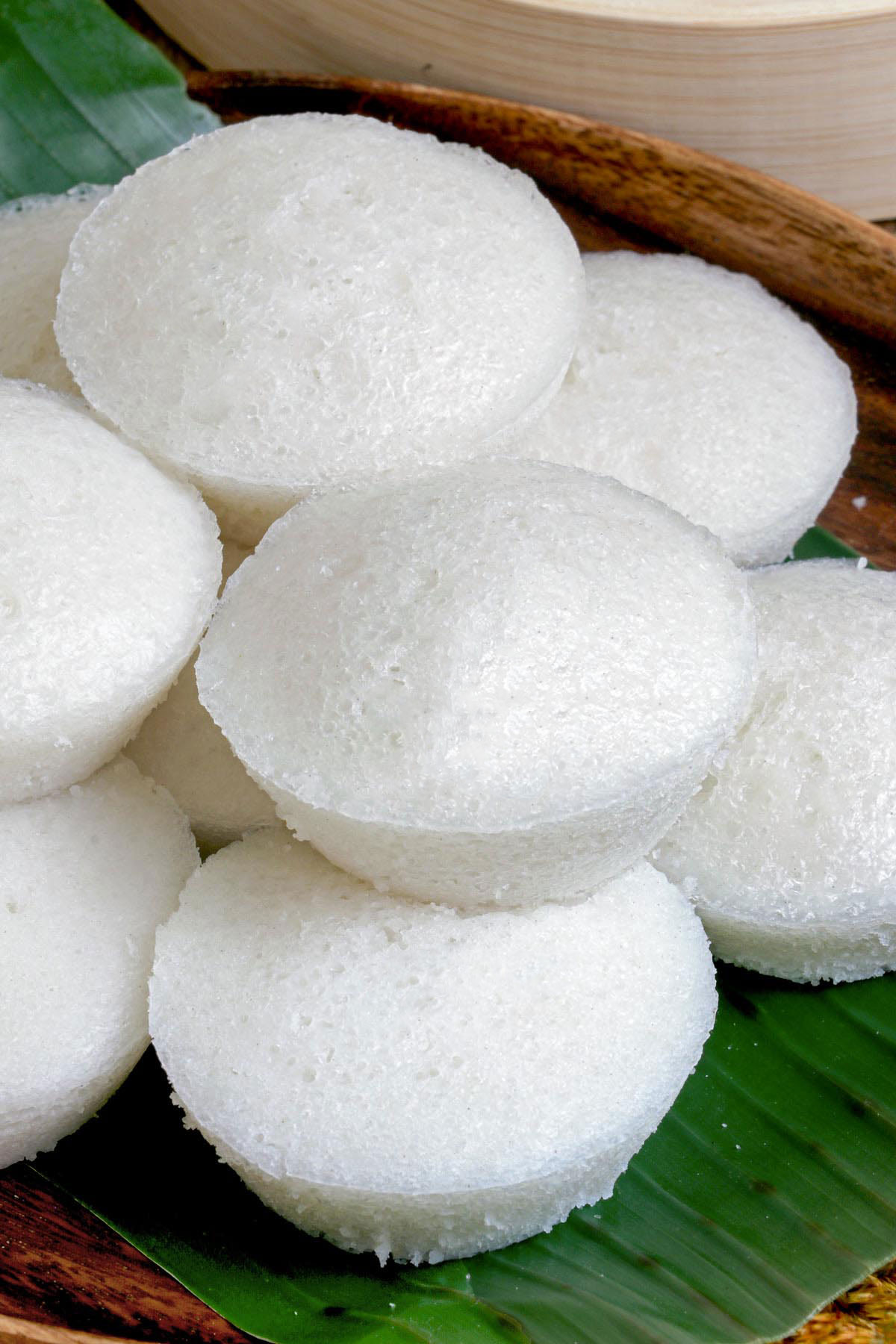 These classic Filipino steamed rice cakes, 'puto', are perfect with a hot cup of coffee for a delightful filling snack or breakfast.