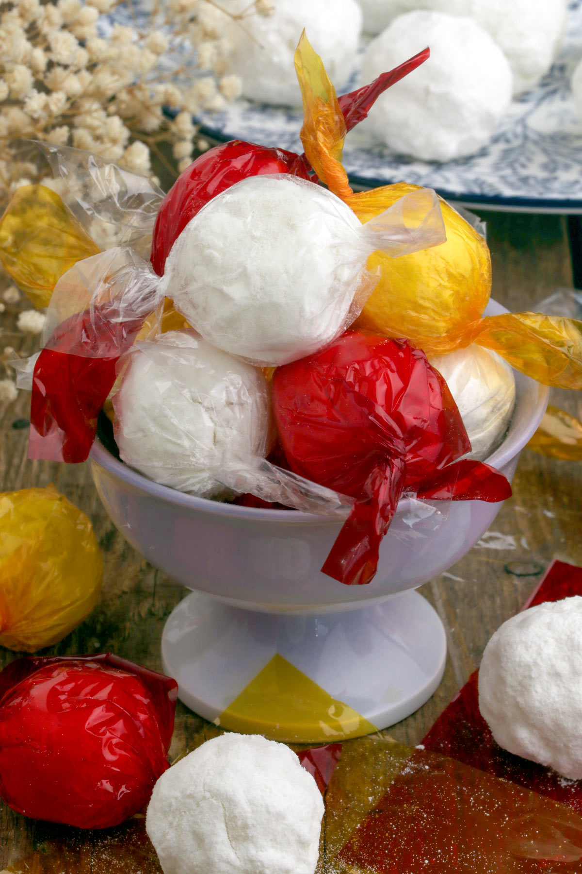 Macapuno Balls or Macapuno Candies are sweet, soft delectable treats with hints of chewiness that are just addicting! Made with macapuno (coconut sport) and condensed milk cooked together with a bit of cornstarch. Once cooked, they are rolled into balls and coated with skimmed milk. They are then individually wrapped in colorful cellophane or packed in small containers or plastic bags.