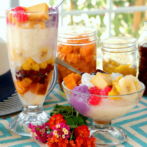 You can either make everything from scratch or you can buy the ingredients that are usually sold in jars. Sweetened banana and sweet potato, however, have to be homemade.