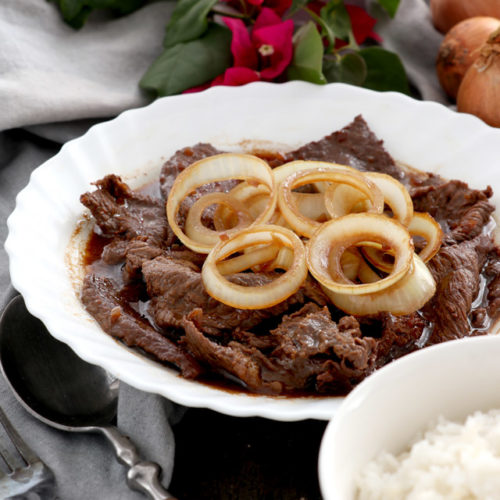 Bistek or Bistek Tagalog is a Filipino version beef steak marinated in soy sauce and kalamansi juice. Try this savory and flavor-rich dish now.