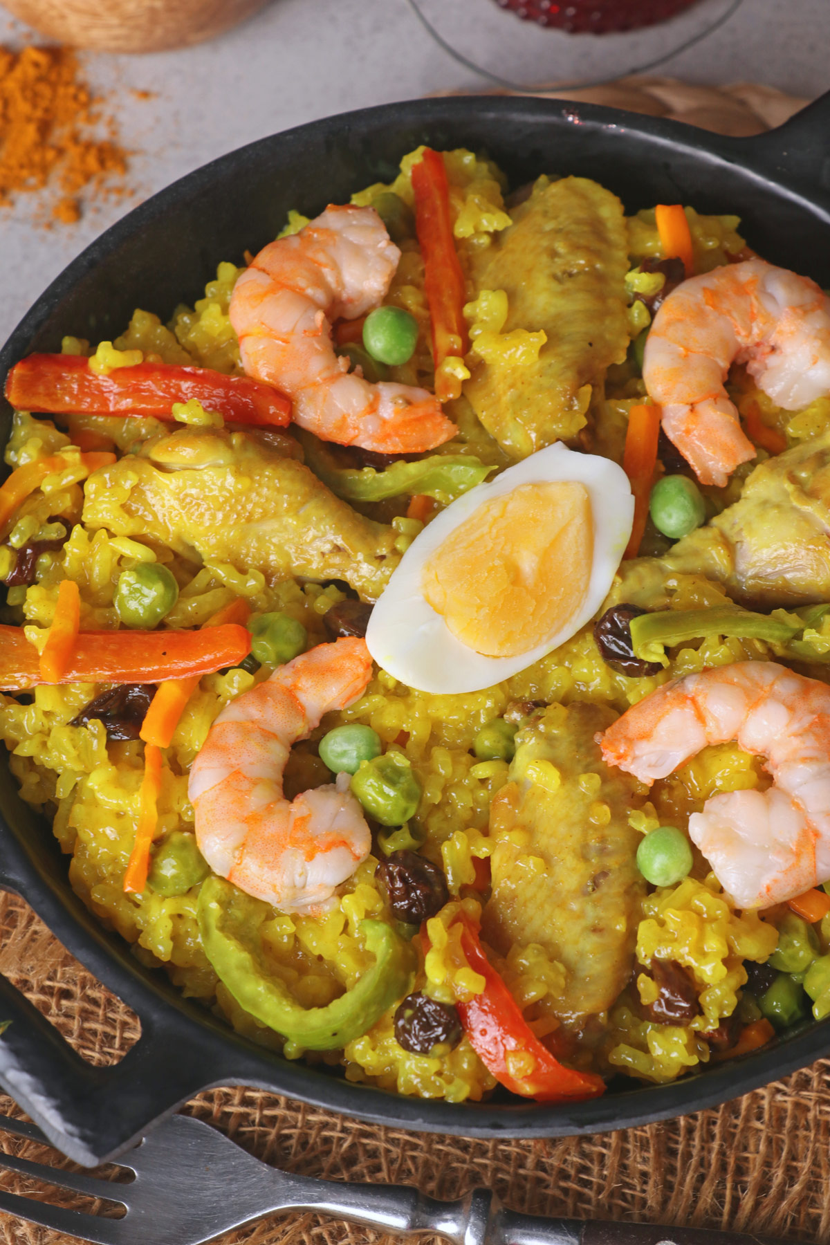 This simple Arroz Valenciana or Arroz a la Valenciana recipe is the perfect all-in-one dish to serve on special occasions due to its attractive visuals and amazing flavors! Made by cooking the chicken, glutinous rice, vegetables, and spices in a pan first then simmering them in coconut milk. It is served topped with hard-boiled eggs.