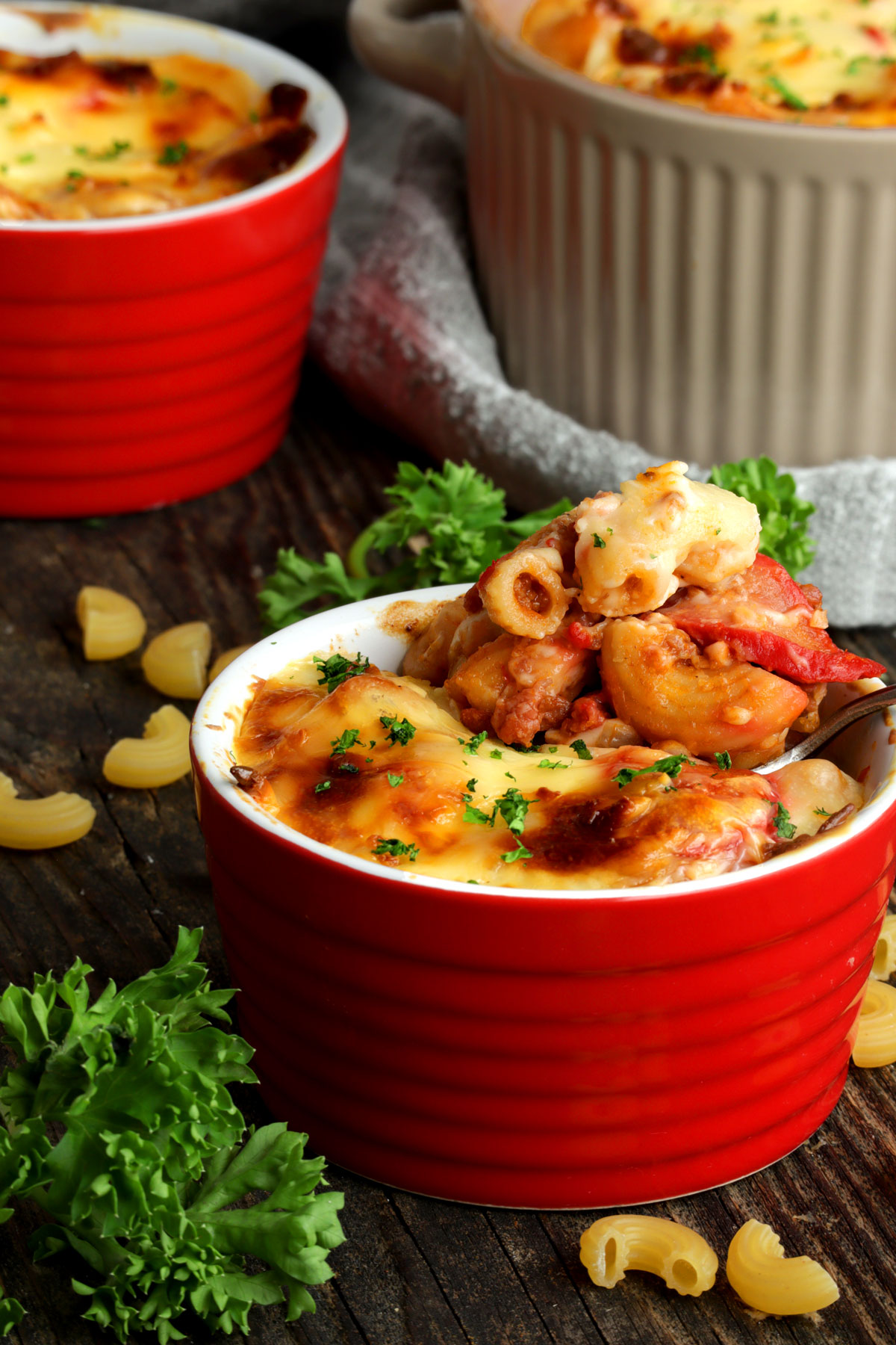 What makes it different from the all-time American favorite version is the addition of sliced hotdogs and the use of sweet-style Filipino spaghetti pasta. While keeping the traditional use of elbow macaroni and cheese sauce, Filipino baked mac is on the meaty side with added ground beef. A layer of cheese sauce is also added on top.