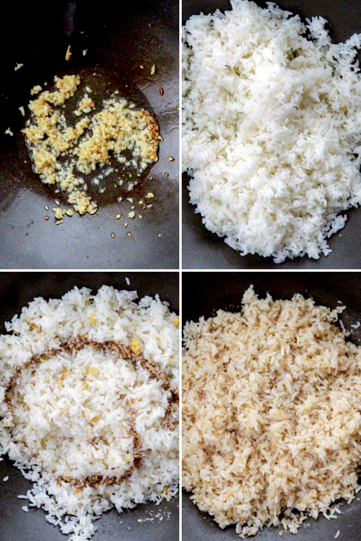 - For vegan garlic rice, you may add tofu, green peas, and chopped scallions.